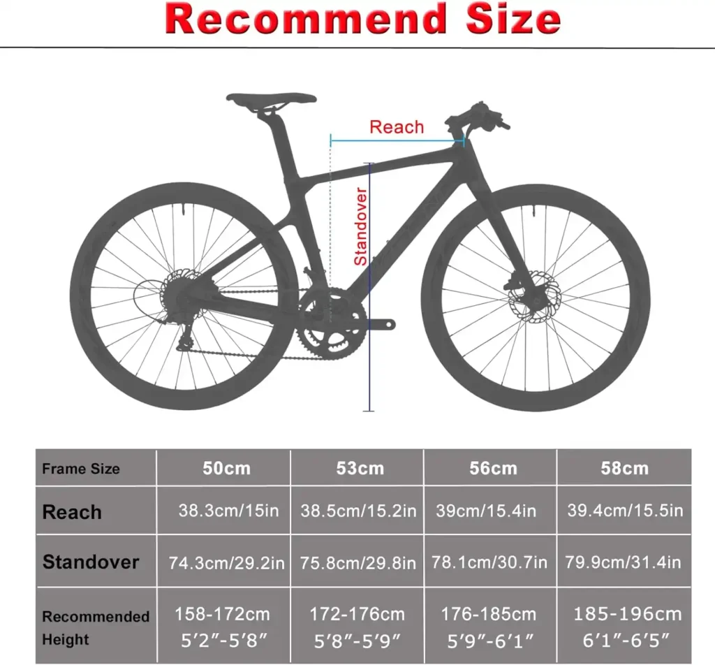 Der Rahmen besteht aus T800-Kohlefaser (Carbon). Das bedeutet für dich: sehr gutes Verhältnis von Gewicht zu Festigkeit, spürbar gedämpfte Vibrationen und eine langlebige, steife Basis für effizientes Pedalieren.